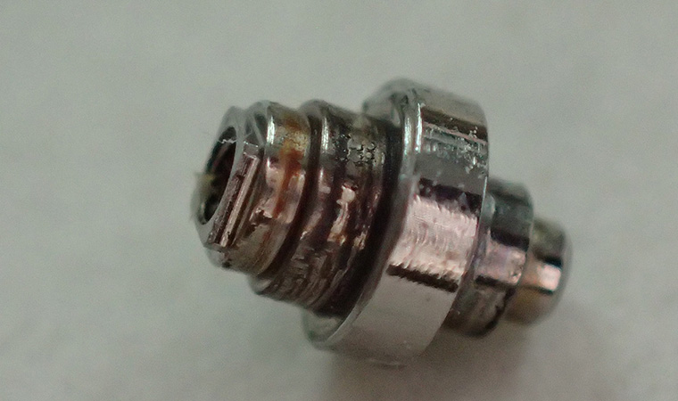 オイルが完全に切れており、サビや摩耗が確認できます。