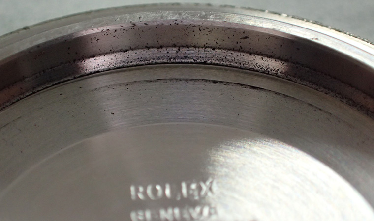 この金属粉は、ローターが裏蓋と接触したことで発生したものです。