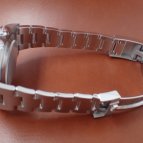 ブレスレットは、前モデルでは中空だった中央のリンクパーツが無垢パーツに変更され堅牢性がアップ。バックルにて容易に約5mmの微調整が可能なエクステンション機能であるイージーリンクを備えるなど利便性、着用時の快適性や着脱時の操作性を向上させている。