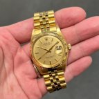 本命の時計を見るついでに紹介して頂いたデイトジャスト金無垢(1601/8)のホワイトダイヤル。ダイヤルの...