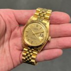 珍しいグレーダイヤルのデイトジャストの金無垢モデルに一目惚れしました。