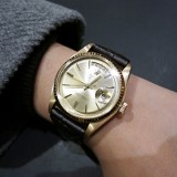 今日からヴィンテージ・デビュー!イエローゴールドとシルバー文字盤が雰囲気最高!!サイクロップレンズが無いのも購入の後押しになりました。