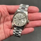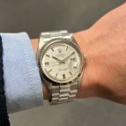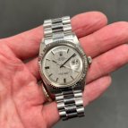デイトナから買い替えでヴィンテージのデイデイト(1803/9)にしました!イエローゴールドのデイデイトは革ベルトで愛用しており、今回はホワイトゴールドのブレス付きを探している中で、気に入った個体…