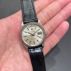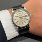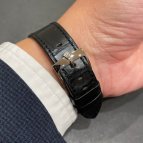 ケースの素材はホワイトゴールド、ブレスはレザー仕様となっています。