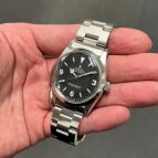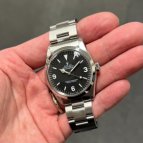 普段は14060Mをメインに使っていますが、そろそろビンテージモデルにも興味を持ち始め色々調べたら、エクスプローラー1016がいいなと思いました。サブよりも小ぶりで着けやすそうなサイズと可愛らしい369の丸文字が、いかにもビンテージっぽい感じで長く使えそうかなと・・・。あと他のスポーツモデルのビンテージに比べて相場大きく変わってなく今が狙い目というのも少しありますね。