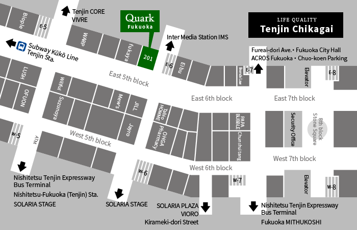 TEL:092-771-9093FAX : 092-771-9097 Mail : fukuoka@909.co.jp เวลาทำการ : 10:00 - 20:00 ปิด : ไม่มี สถานที่ตั้ง : 810-0001 East 5th Block 201, Tenjin Chikagai, 2 Tenjin, Chuo-ku, Fukuoka Google Maps